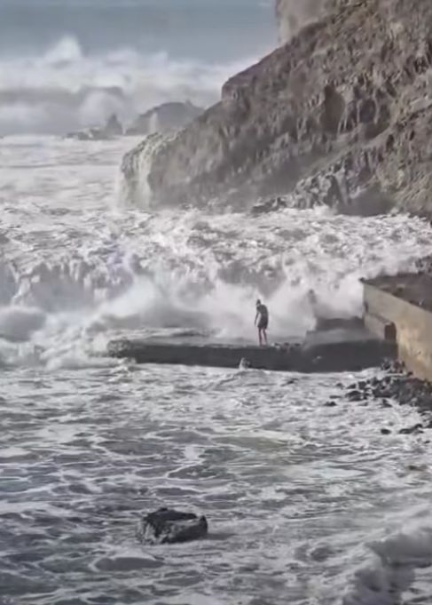 Aunque ayer se cerraron las playas y se izó la bandera roja en todas las playas de Canarias, algunos turistas siguen aventurándose cerca del Atlántico. Sin embargo, cuando hay oleaje fuerte, es difícil predecirlo. Las fases de aparente calma se alternan con olas inmensas.