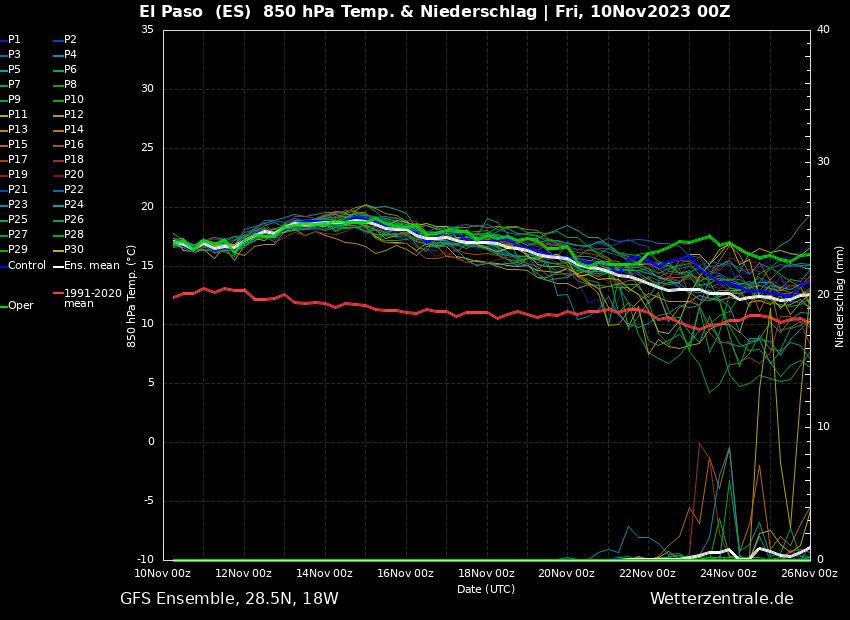 Der Calima kam gestern mit ein bisschen Verspätung aber dann doch flott und für La Palma recht stark. Am Donnerstag gegen Abend wird der Staub weggeblasen, kommt aber am Freitagmittag bereits wieder zurück. Die Temperaturen bleiben bis zum 20. Dezember eher über dem langjährigen Durchschnitt, danach wird es bis Ende Jahr eher kühl. Grössere Regenfälle sind in diesem Jahr nicht mehr zu erwarten.
