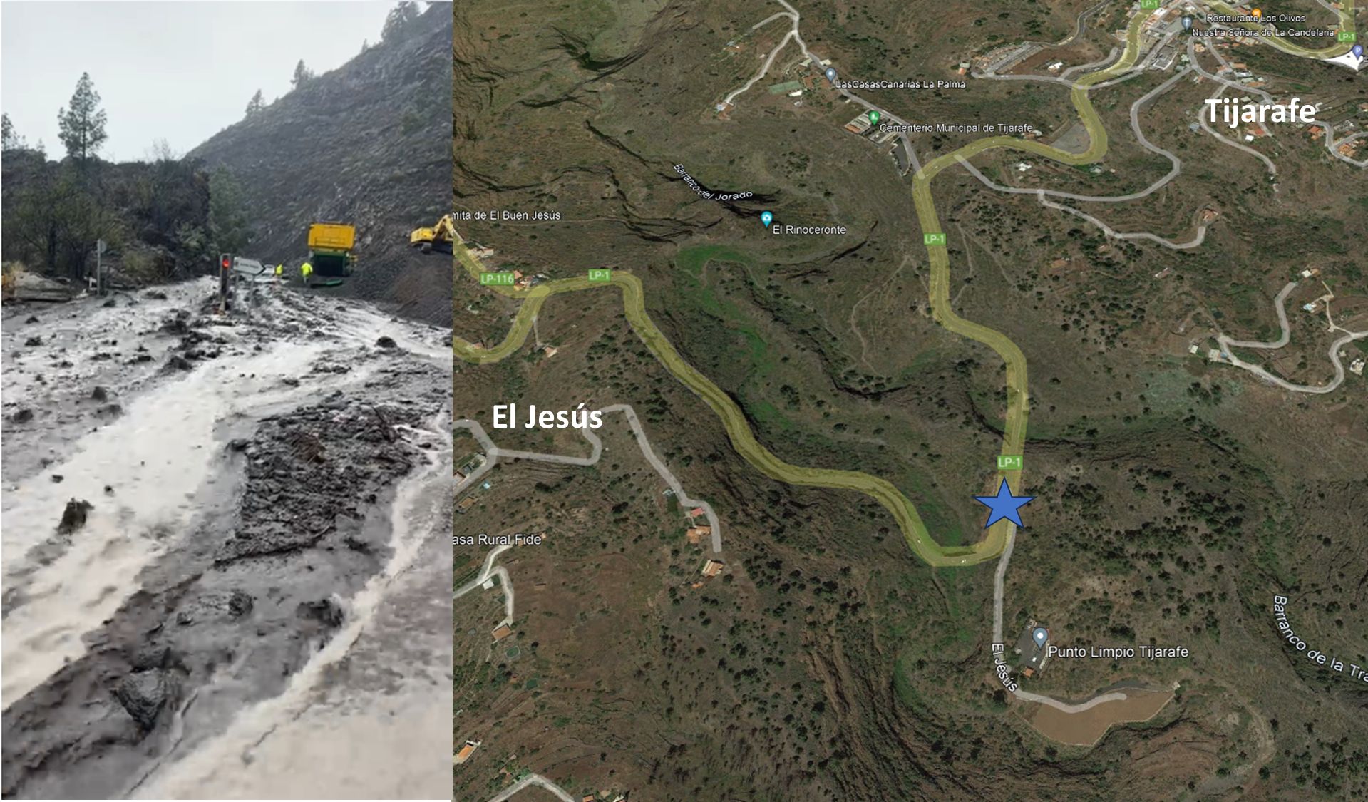 Ein großer Erdrutsch hat die Straße LP-105 nach Los Tilos verschüttet. Die Straße wird im Moment geräumt. Es ist nicht klar, wie lange sie gesperrt werden muss.
