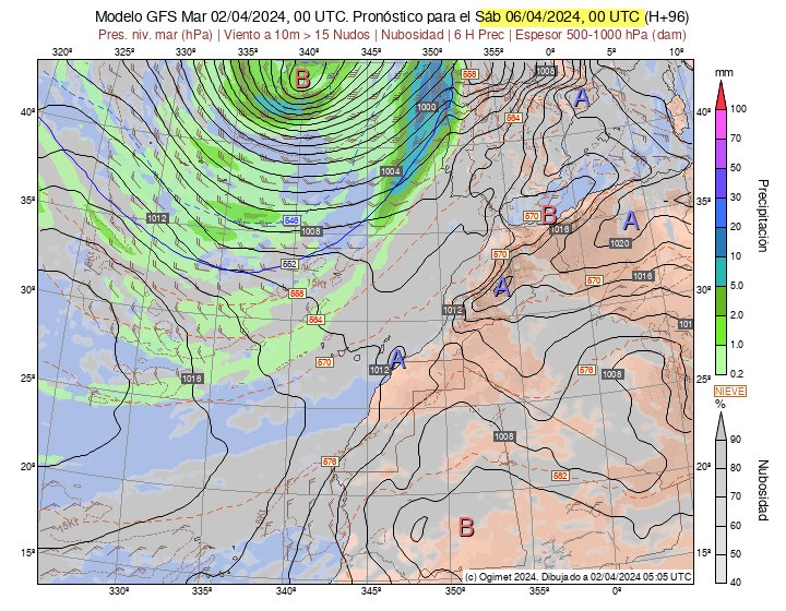 Bild: Prognose Ogimet für Sonntag, Modell GFS.