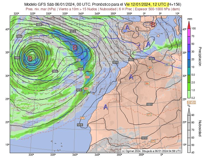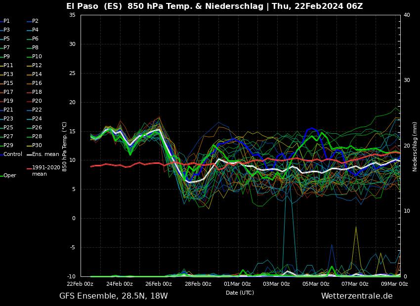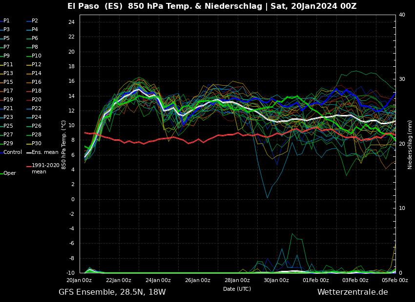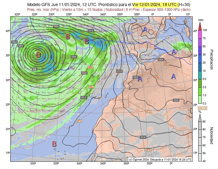 In Bezug auf Niederschläge scheinen sich gute Nachrichten anzubahnen: Für nächsten Freitag wird eine Regenfront aus Südwesten erwartet. Die Größe des Tiefs scheint gigantisch zu werden, mit einem Kerndruck von nur 980 hPa, was dem Kerndruck vom Tropensturm Delta entsprach. Weil dessen Kern aber deutlich weiter weg von den Kanaren ist (~1.700 km), werden wir zwar starken Wind in den Bergen erhalten, nicht aber die zerstörerischen Böen eines Sturms Delta.