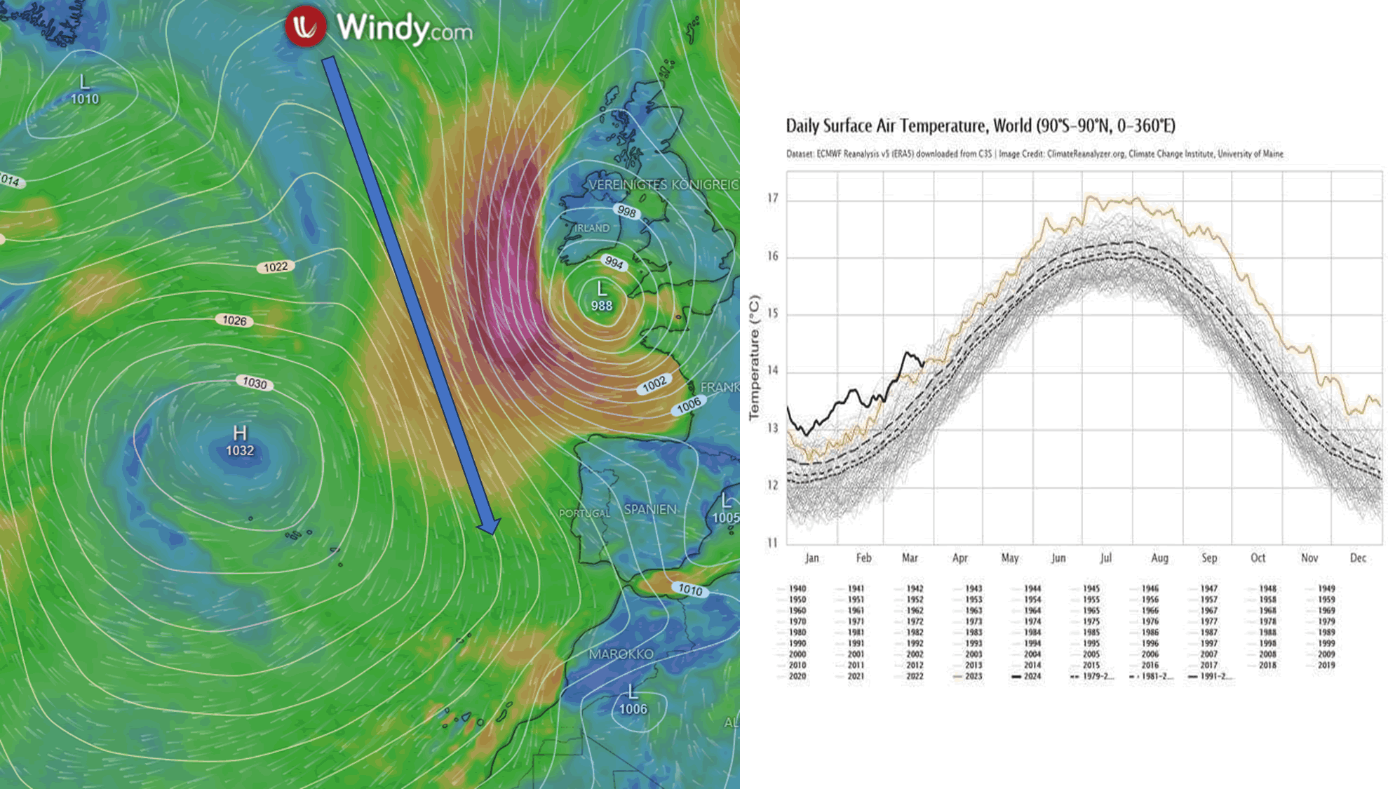 Die ungefähre Lage der DANA ist in der obenstehenden Ogimet Wetterkarte vom 24.12. als blauer Kreis eingetragen.
