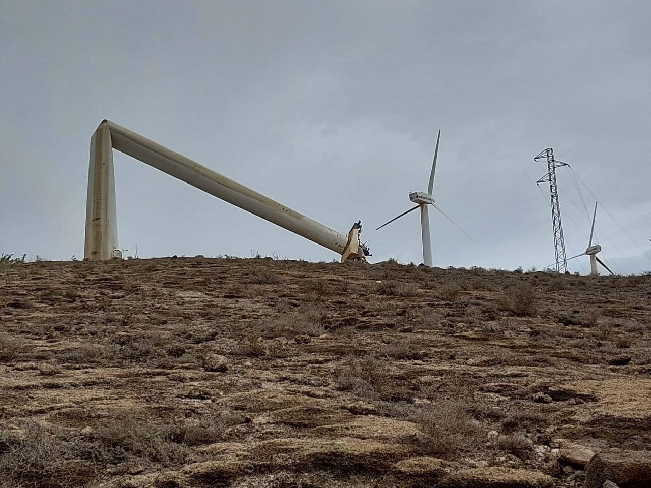 Die Windstärke ist in manchen Gebieten der Kanarischen Inseln heute beachtlich. Bei Bartolomé auf Gran Canaria hat es sogar ein Windrad geknickt.