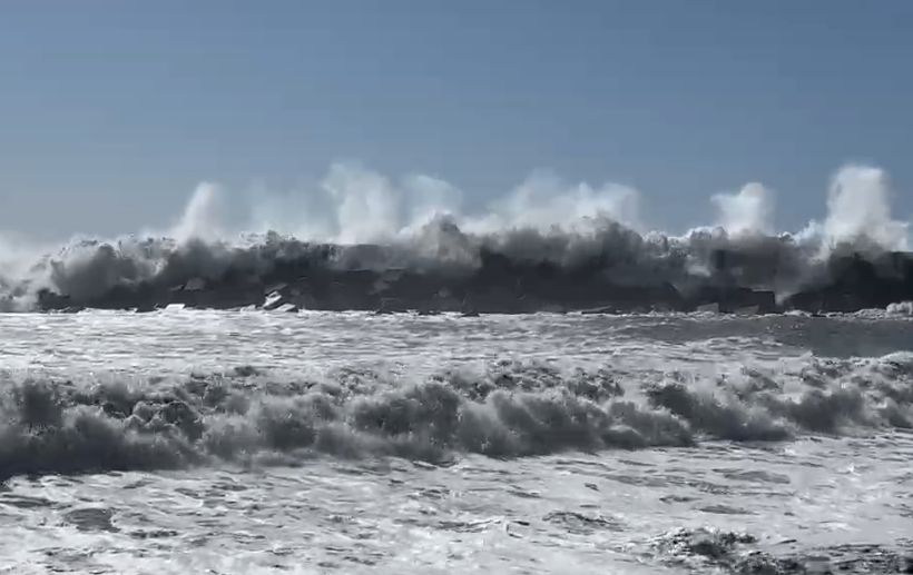 Die Wellenhöhen werden für heute auf bis zu 4m vorausgesagt und es empfiehlt sich sehr, Abstand zum Meer zu halten.