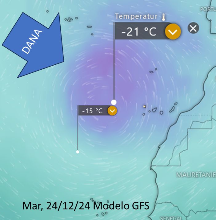 Einmal mehr ist die DANA, die "Depresión alislada en niveles altas" oder auch Kaltlufttropfen, in aller Munde. Diesmal stimmt es sogar, in den kommenden Tagen wird sich in der Höhe polare Kaltluft abspalten und über den Kanarischen Inseln zu stehen kommen.