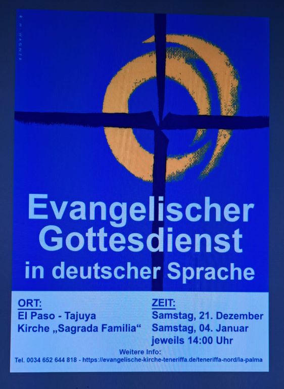 Ich wurde gebeten, die Information für diese beiden Gottesdienste zu publizieren, was ich im Weihnachtsmodus, aber leider etwas verspätet, gerne mache. Eine neue deutschsprachige Pfarrerin auf der Insel wird diese heute und am 4. Januar in El Paso, Tajuya, abhalten.