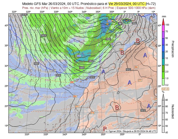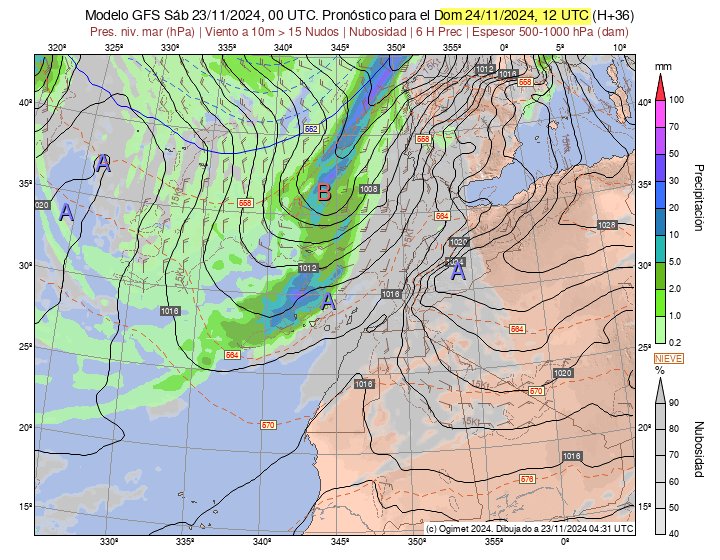 AEMET hat gestern nun auch einen Wetteralarm wegen den starken vorausgesagten Winden publiziert. Dieser ist für morgen Sonntag orange und für Montag gelb. Ich sehe es im Moment anders, der Sturm wird am Montag Morgen erst seinen üblen Höhepunkt erreichen.