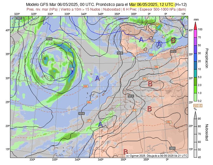 Todos los modelos meteorológicos prevén el paso de un frente de lluvias en la noche del lunes al martes. La lluvia nos llegará con viento del oeste o suroeste, lo que significa que la zona de La Palma recibirá la mayor parte de las precipitaciones. El martes será un día lluvioso.