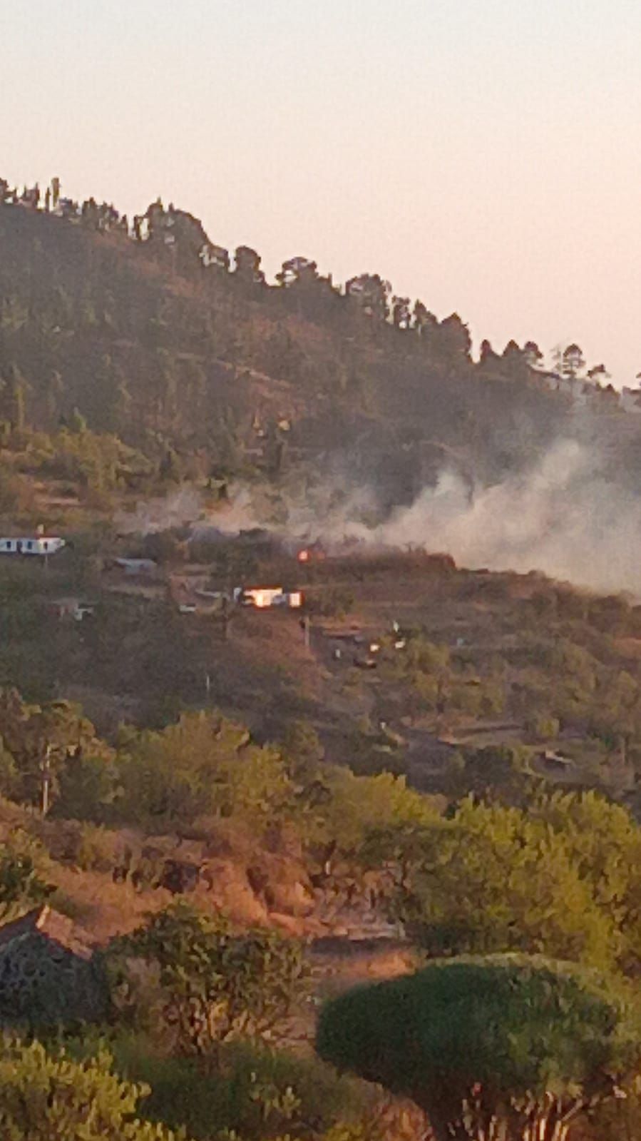 En la imagen se puede ver cómo el humo se desplazó hacia la derecha, ya que soplaba un fuerte alisio en la zona y sin una intervención muy rápida un incendio de este tipo puede descontrolarse muy rápidamente. El riesgo de incendios forestales sigue siendo alto, se recomienda precaución.
