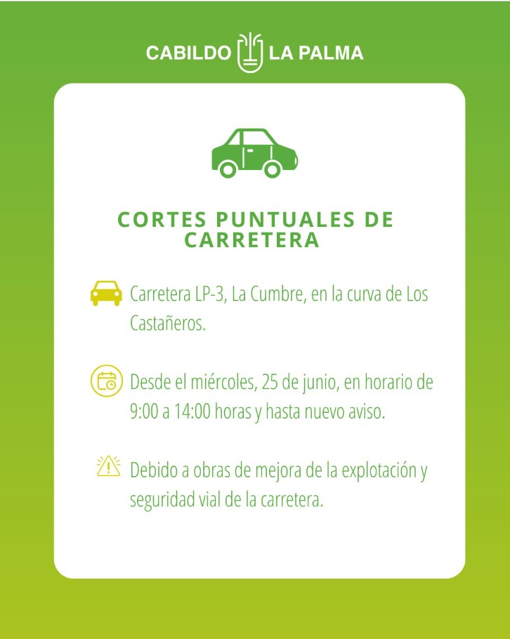 También se prometieron muchas cosas con otros proyectos, pero no se cumplieron muchas. Se inauguró el único gran proyecto de carreteras, la circunvalación de Tazacorte. Desgraciadamente, también en este caso hay un fallo, ya que los que llegan por la nueva carretera de la costa se dirigen al centro de la ciudad y no a la circunvalación. Los demás proyectos de carreteras se quedaron en la fase de planificación. En particular, la LP-2 de El Paso a Las Manchas, una promesa electoral del presidente insular, Sergio Rodríguez, cuya construcción debería haber comenzado antes de finales de 2023, aún no ha superado los numerosos obstáculos legales.